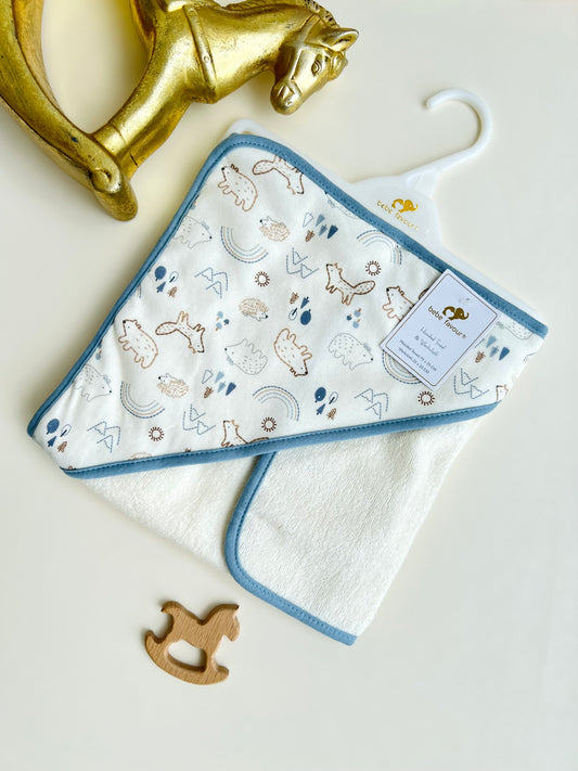 TOALLA CON CAPUCHA ANIMALES OSO AZUL