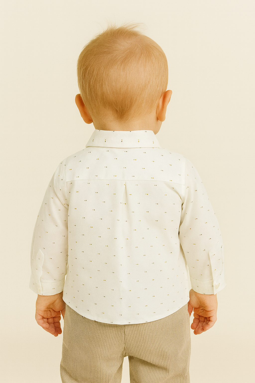 Camisa de manga larga para recién nacido. Cuello camisero. Cierre con botones en la parte delantera.