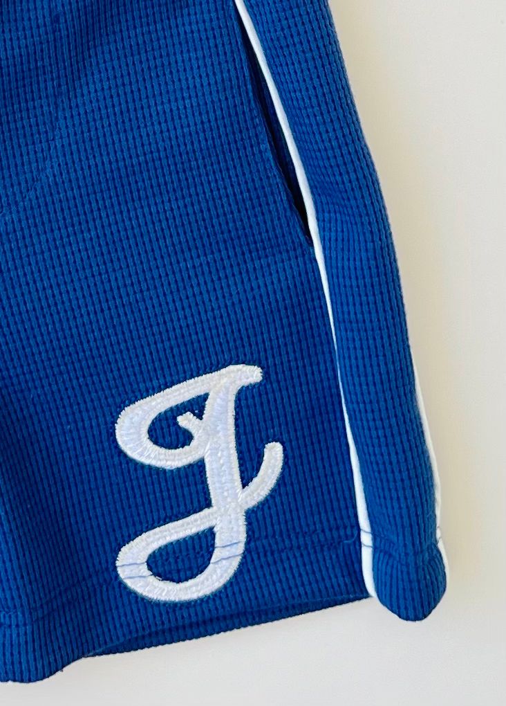 - Short a juego en verde oscuro con el mismo acabado acanalado, pretina elástica con cordón ajustable y detalle bordado “J” en la pierna, garantizando ajuste y comodidad.