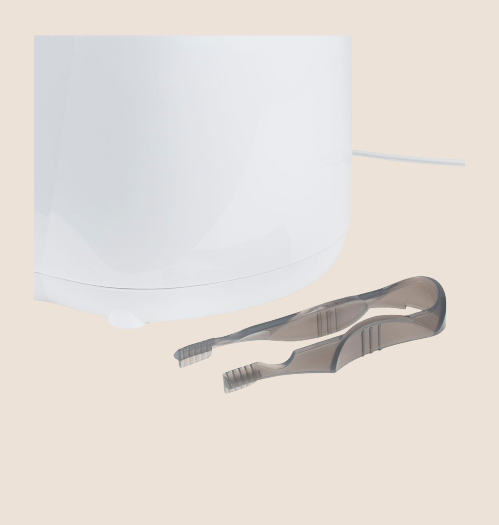 Permite esterilizar hasta 6 biberones al mismo tiempo, junto con chupos, válvulas, tapas y accesorios pequeños.