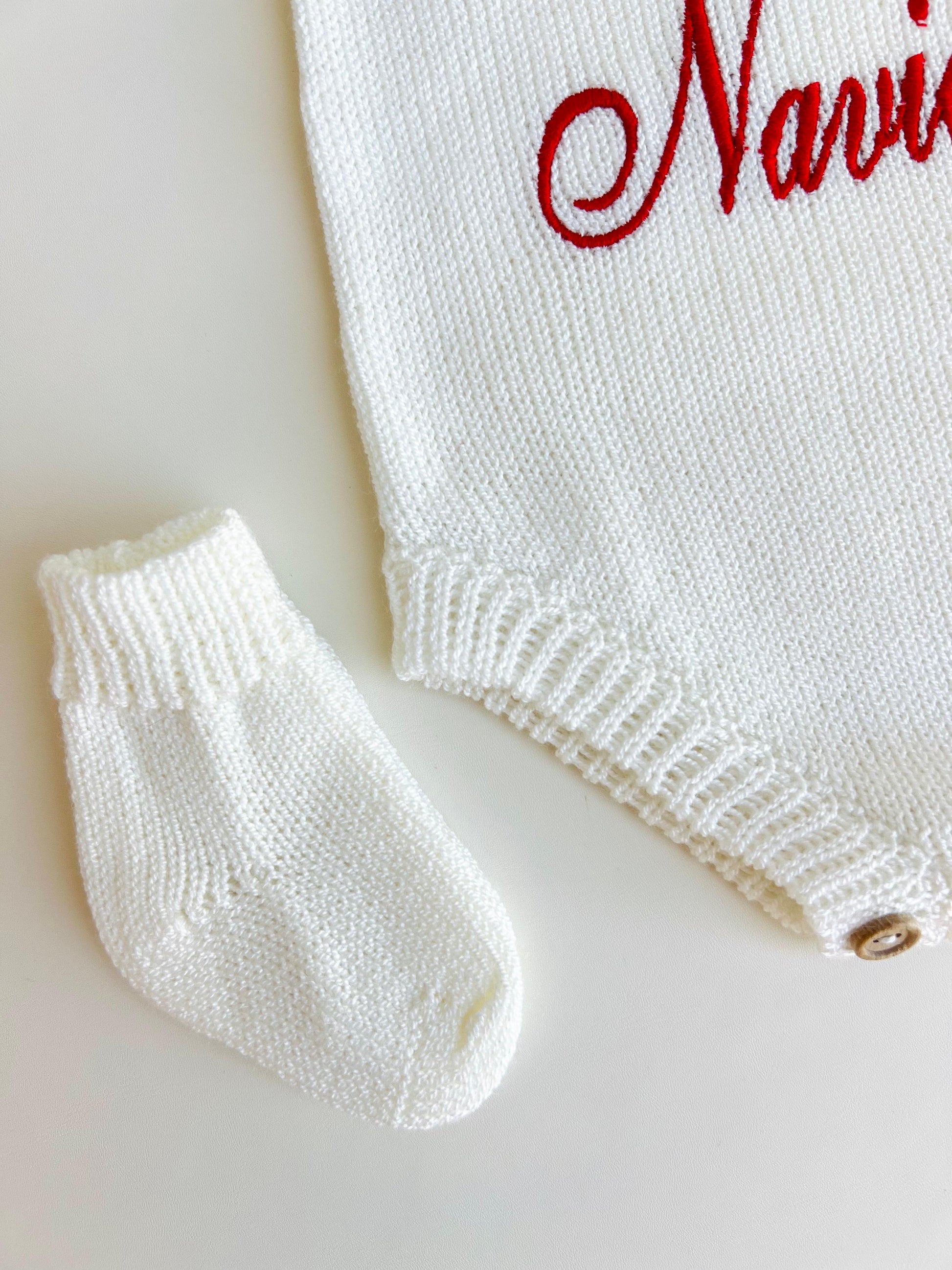 Celebra la primera Navidad de tu bebé con un conjunto exclusivo, tejido a mano y lleno de encanto. Este enterizo tipo romper está elaborado en un punto suave, cálido y delicado al contacto con la piel, ideal para mantener a tu pequeño cómodo durante toda la temporada navideña.