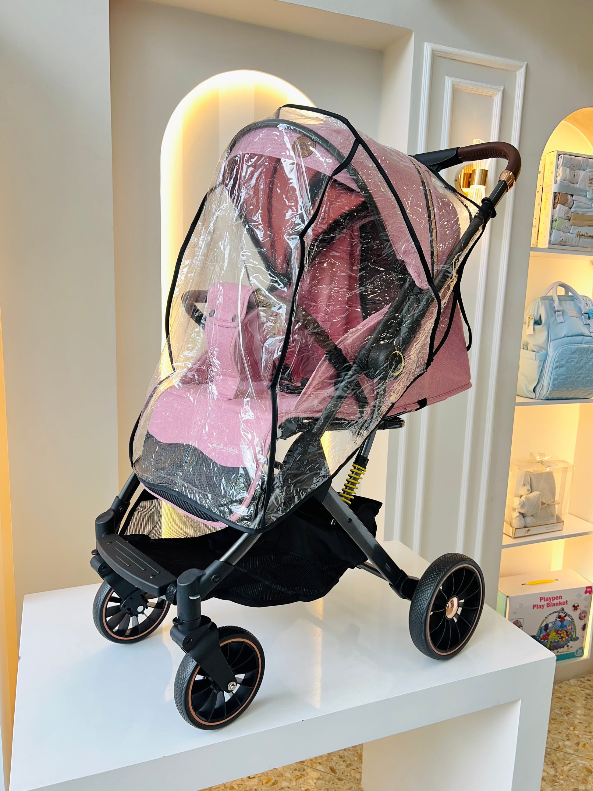 • Incluye protector de lluvia transparente, que cubre completamente el coche y mantiene al bebé seco y cómodo.