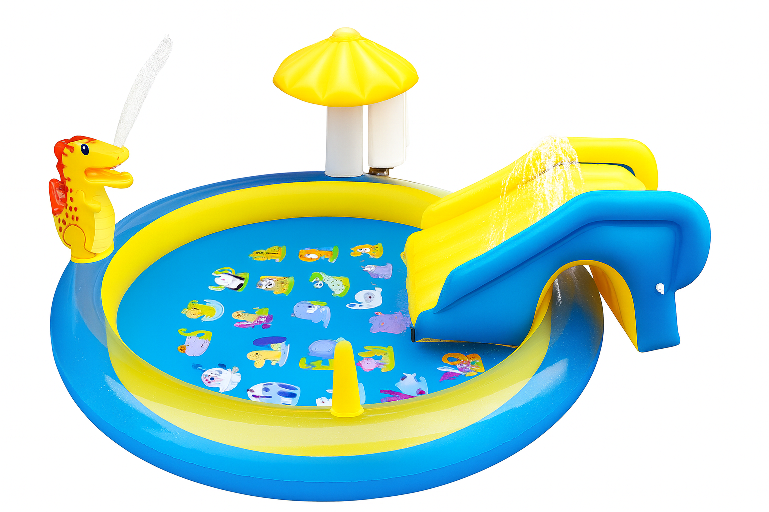 - La piscina circular de dinosaurio es de 87 x 75 x 31.5 pulgadas