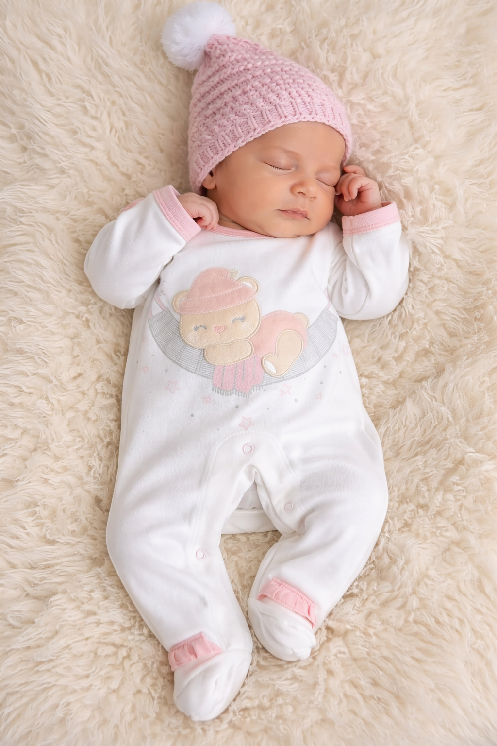 Su tierno diseño de ositos lo convierte en la elección perfecta para el primer día, salidas especiales o como regalo ideal de nacimiento.