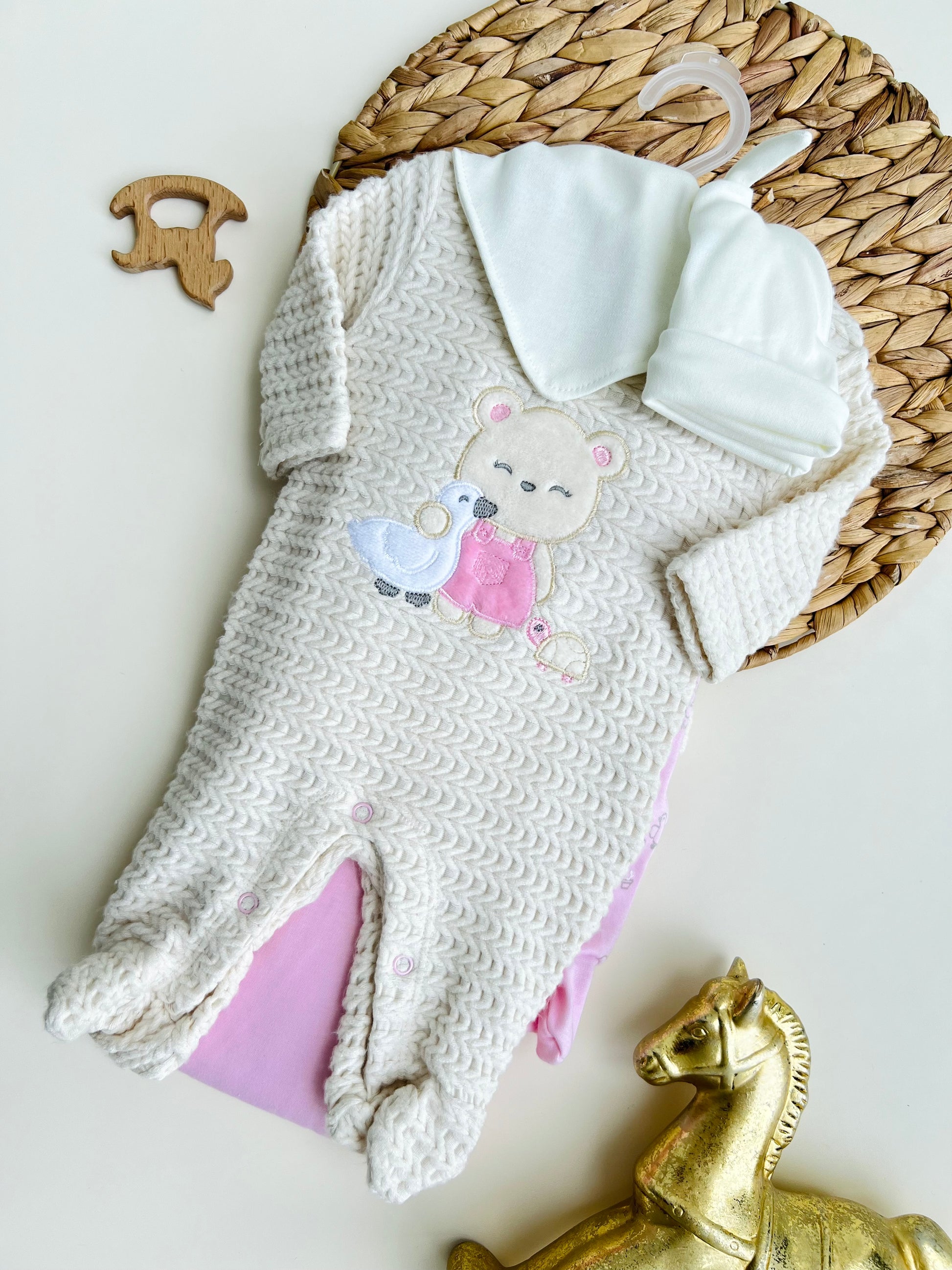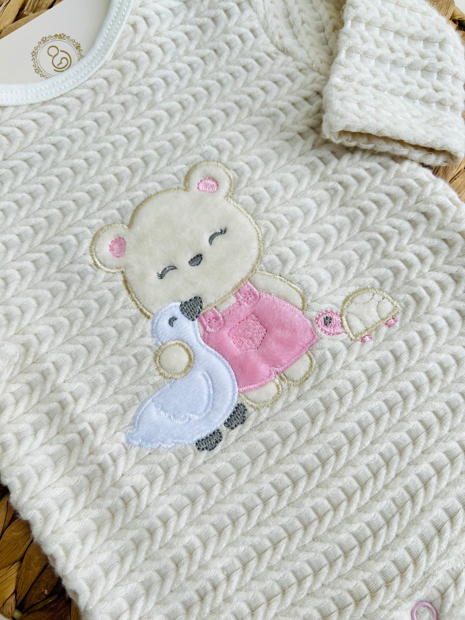 Su tierno diseño de ositos lo convierte en la elección perfecta para el primer día, salidas especiales o como regalo ideal de nacimiento.