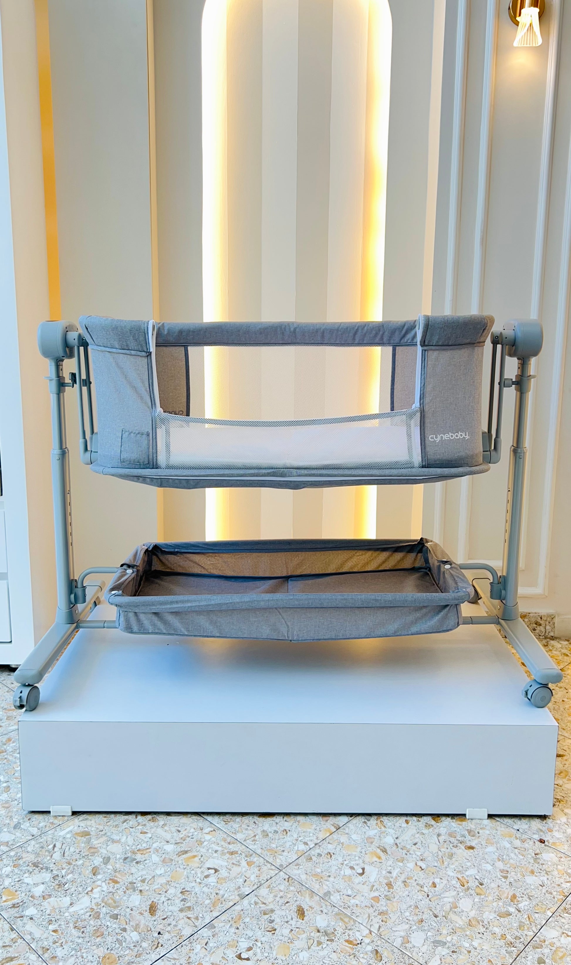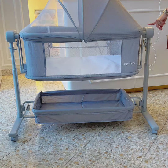 El colecho Cynebaby ha sido diseñado para brindar el descanso más seguro y confortable tanto al bebé como a los padres. Su sistema de balanceo automático eléctrico simula el movimiento natural de los brazos, ayudando a calmar y dormir al bebé con suavidad.