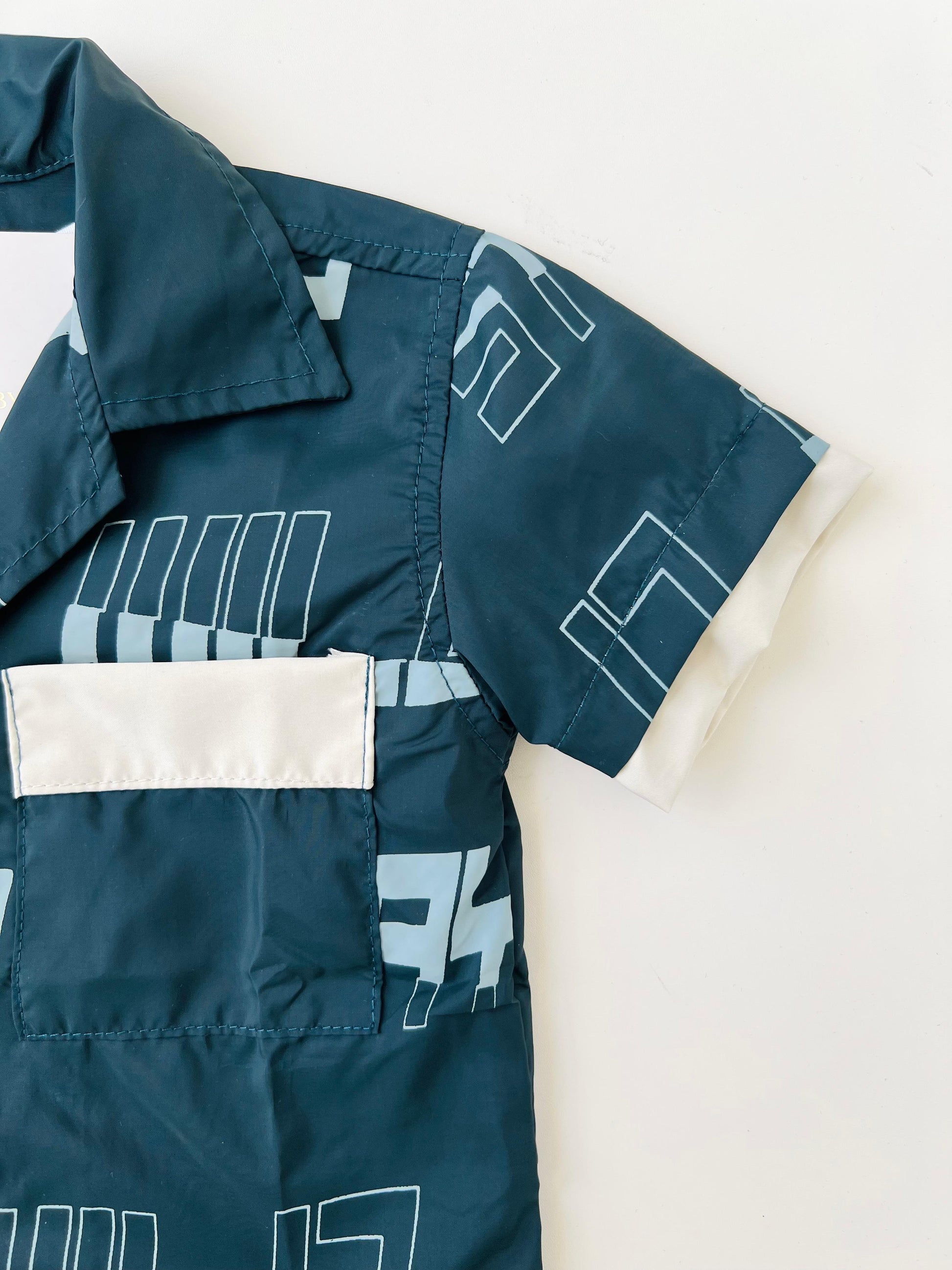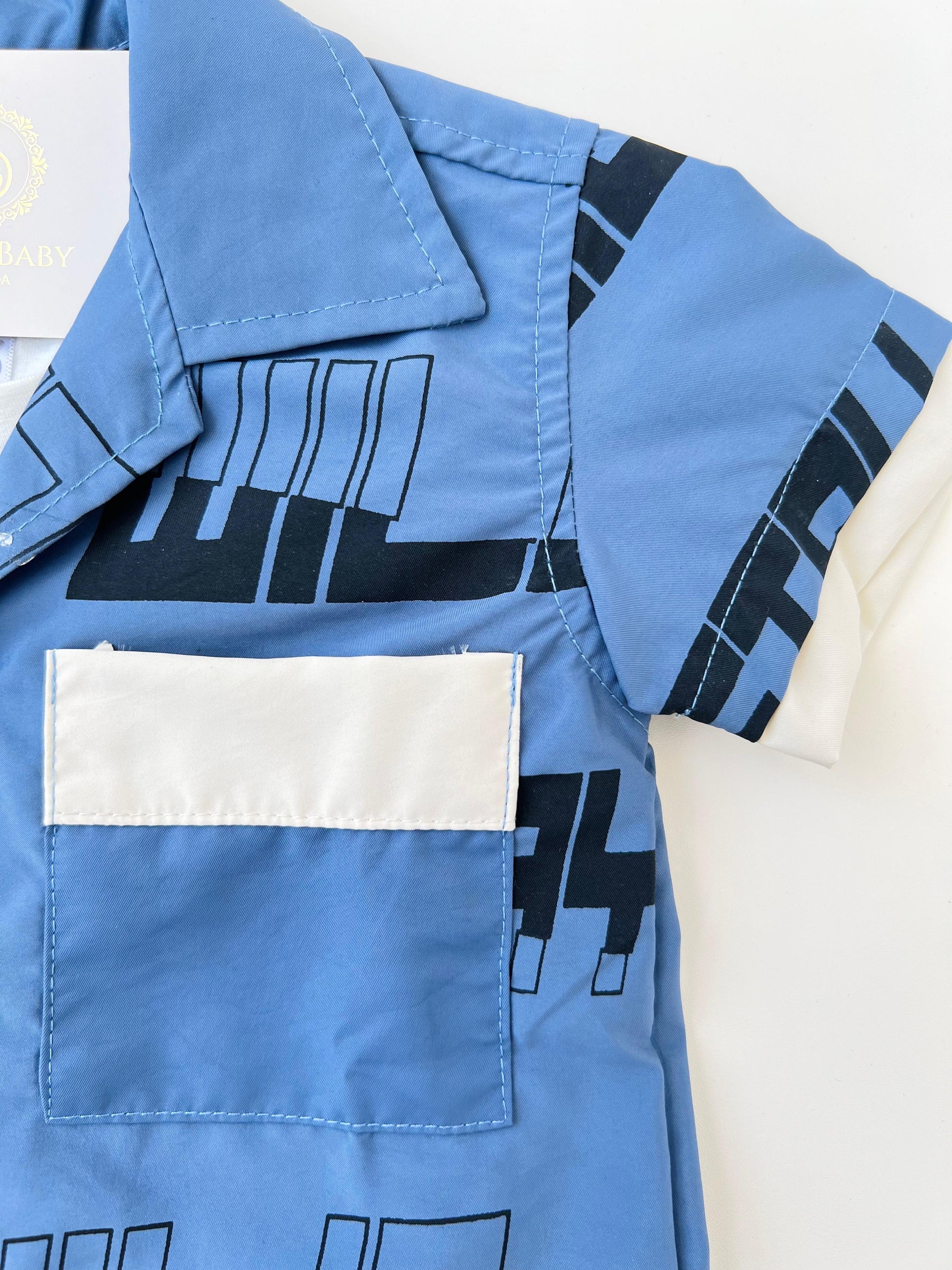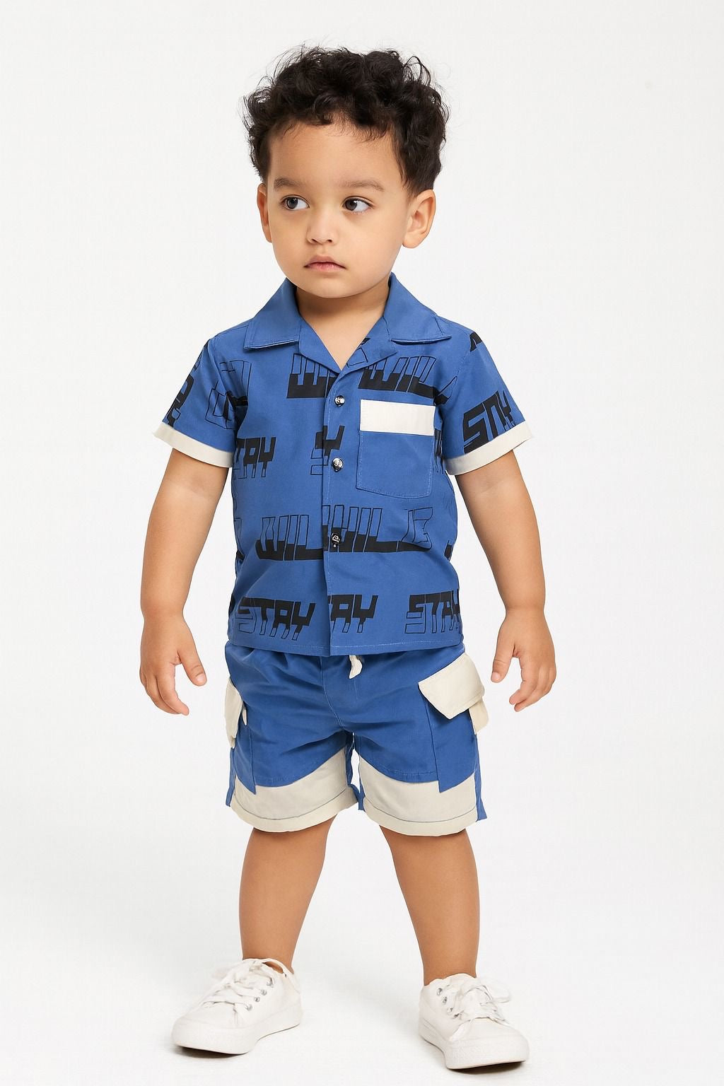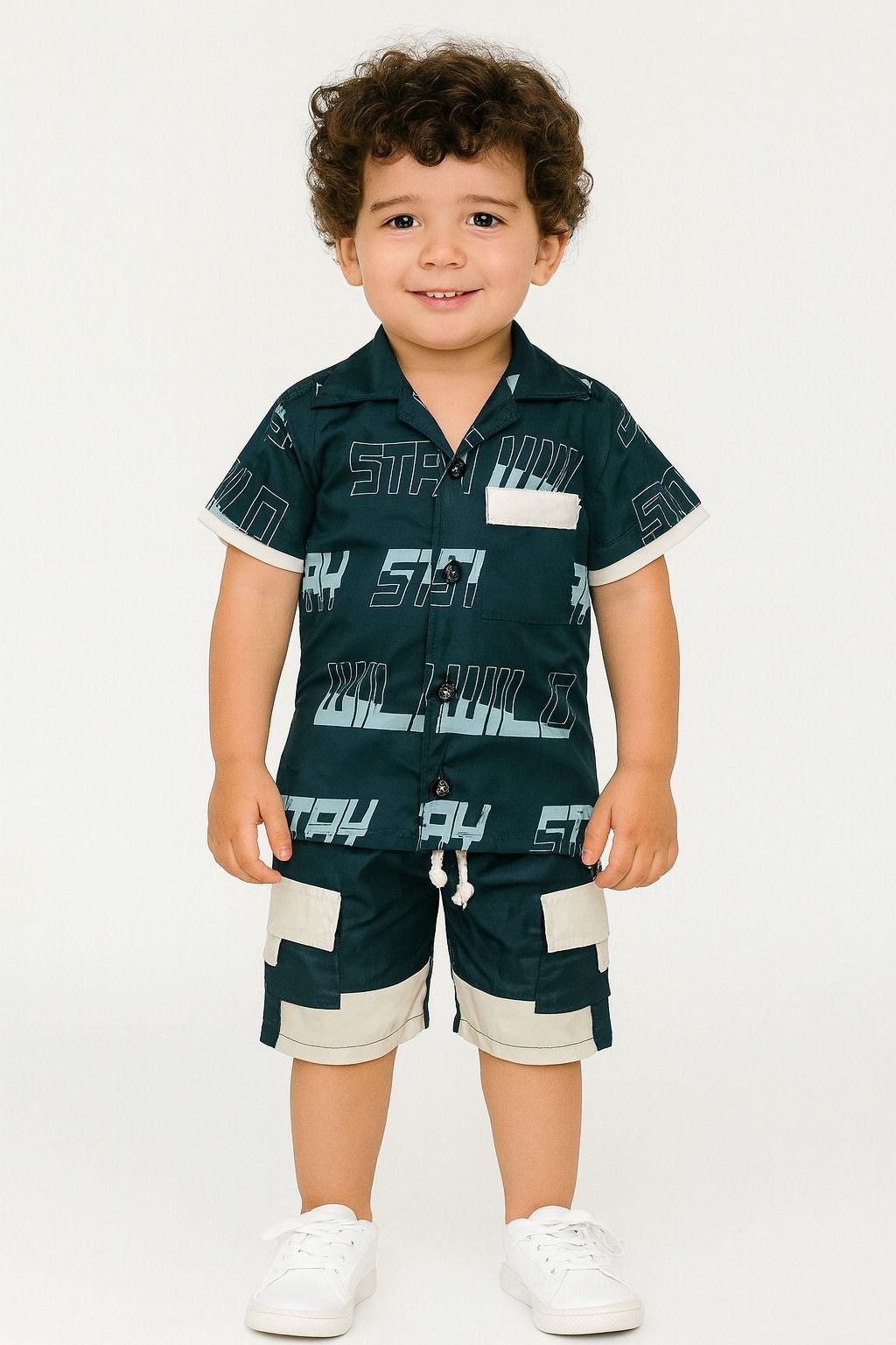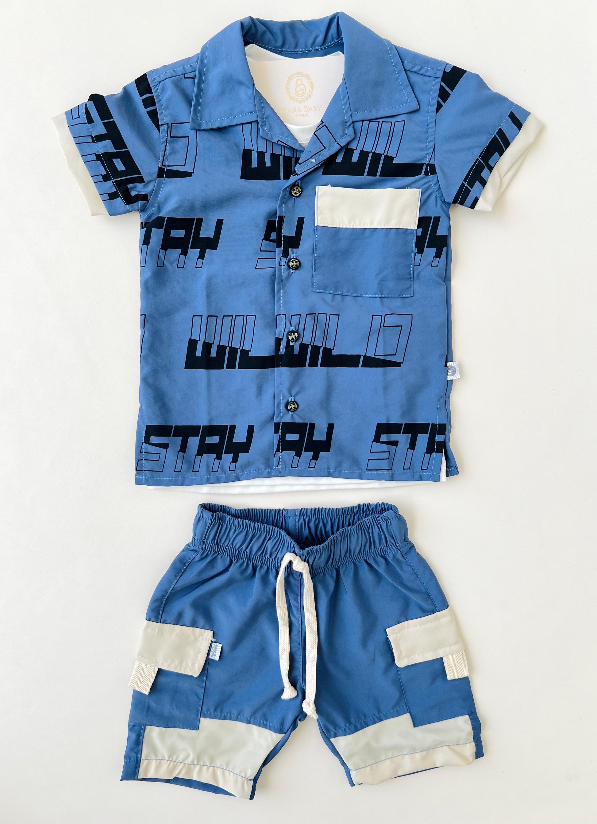 • Camisa manga corta en tela fresca con estampado geométrico y frases urbanas como Stay Wild. Cuenta con botones al frente y bolsillo decorativo en contraste que le da un aire sofisticado y divertido.