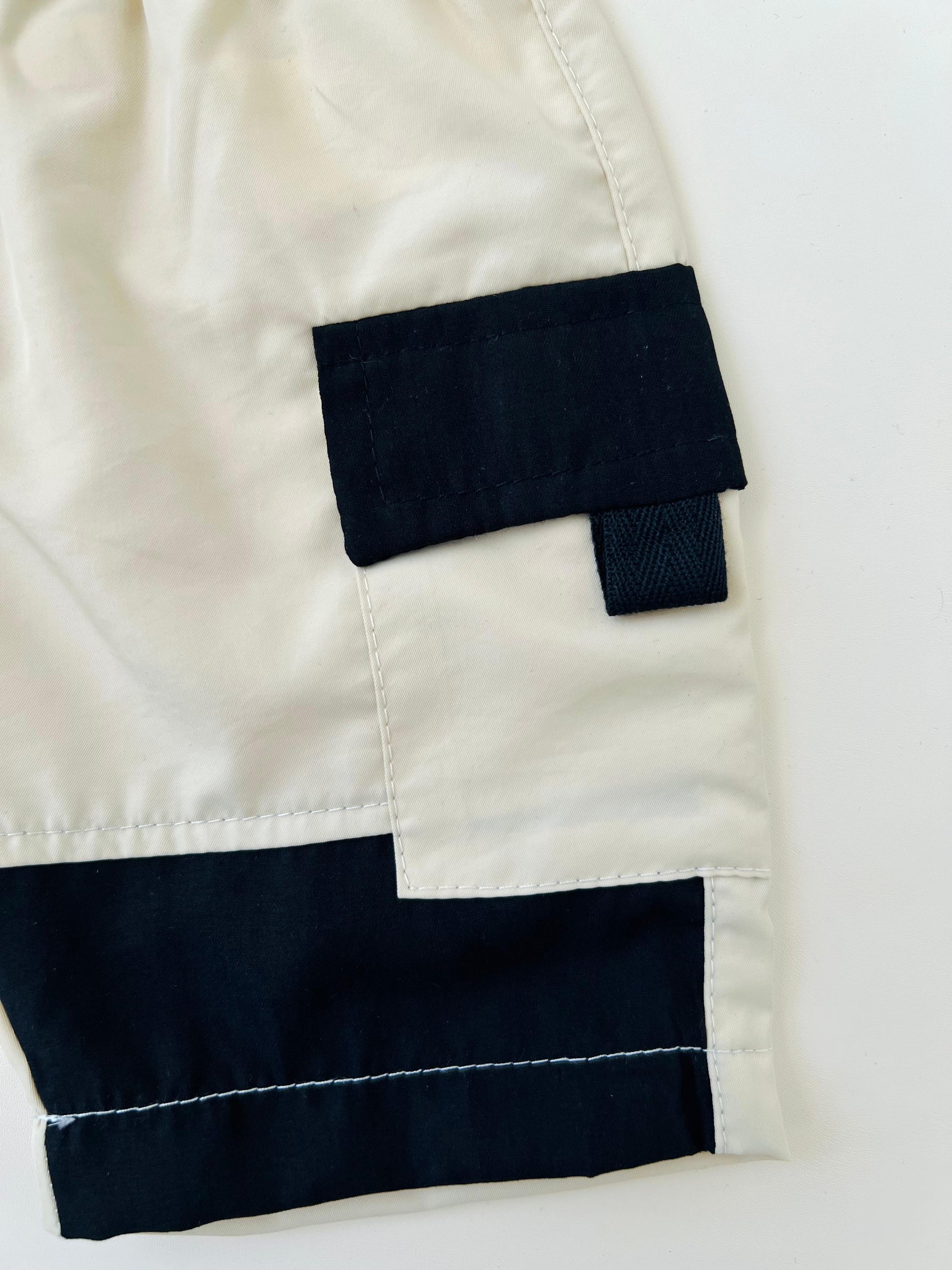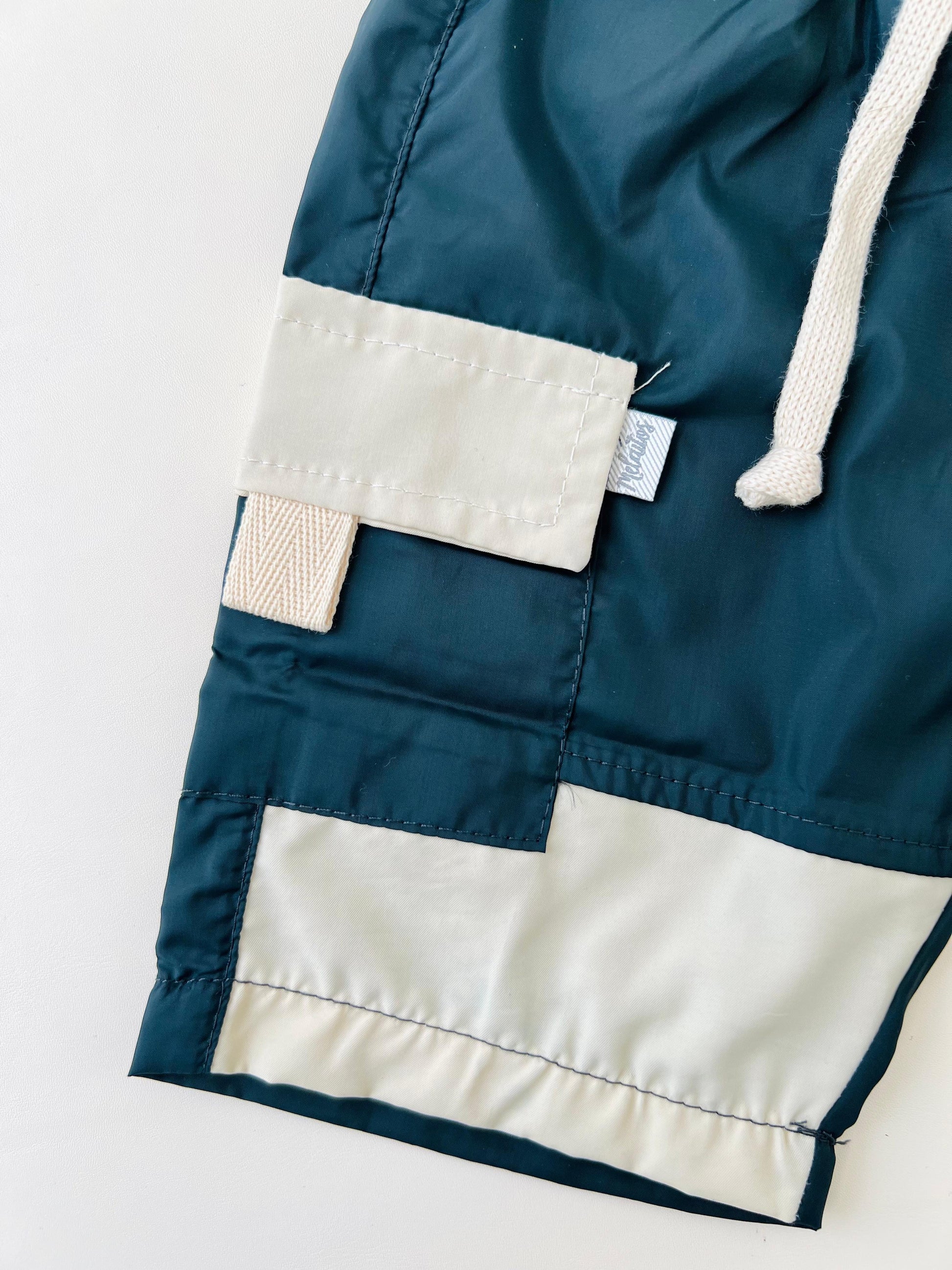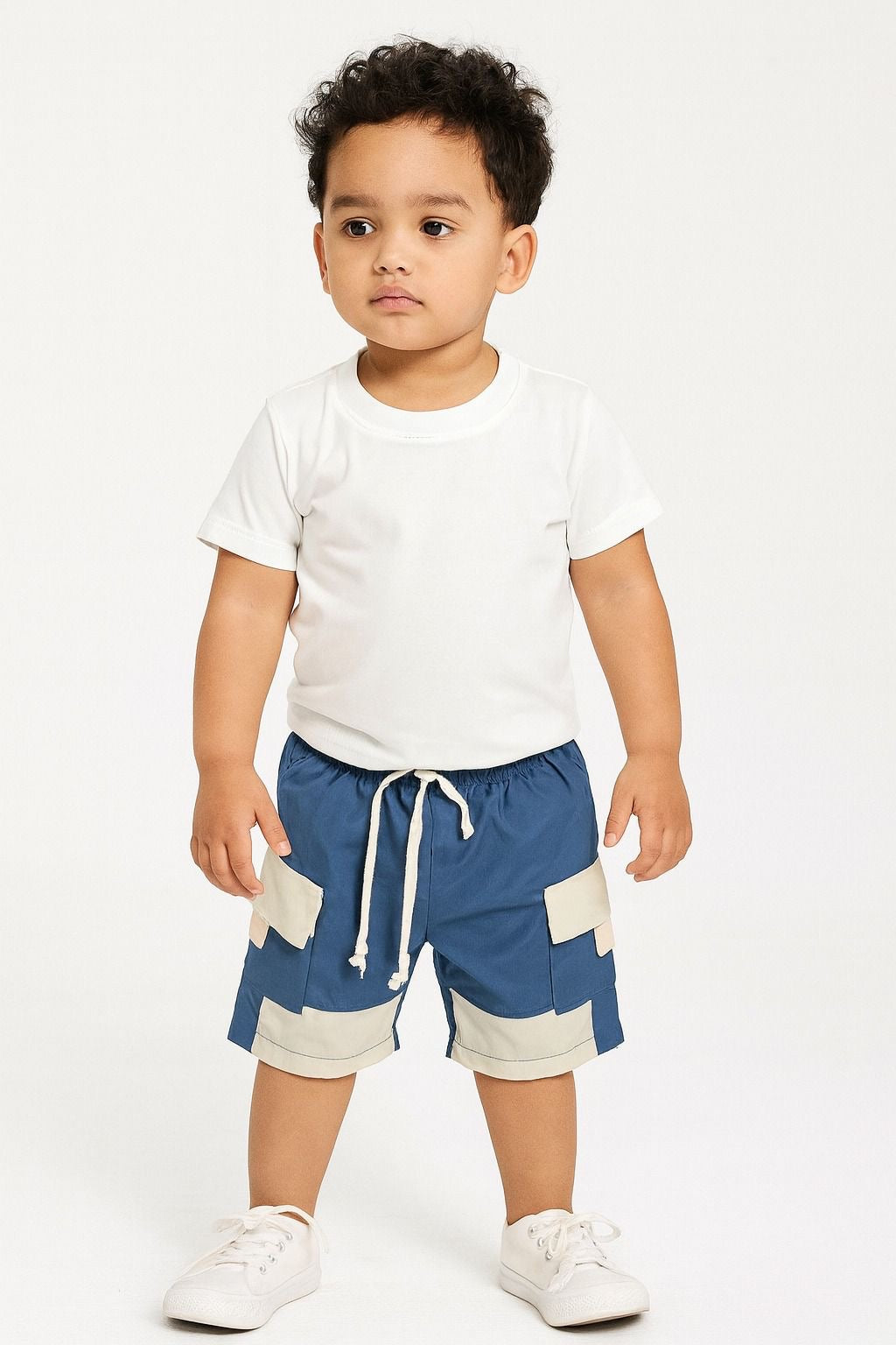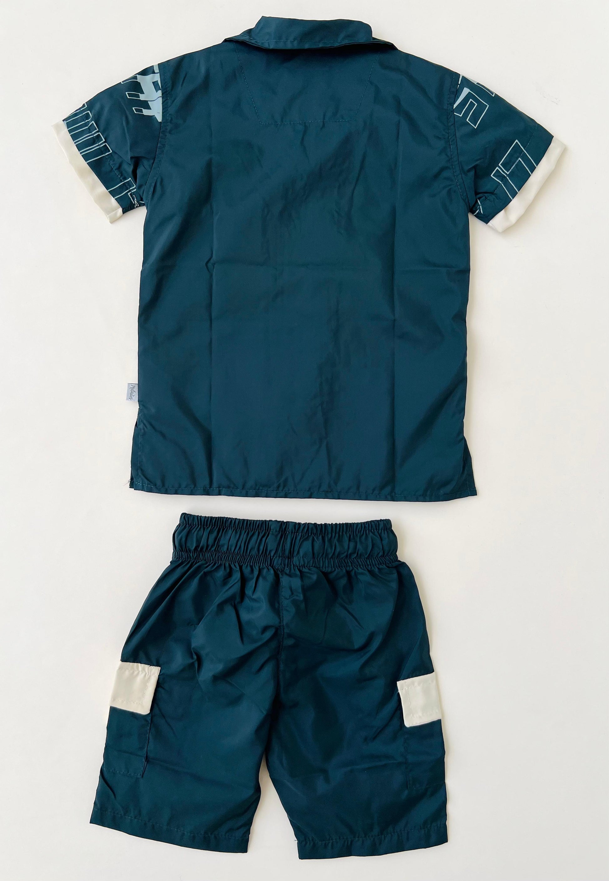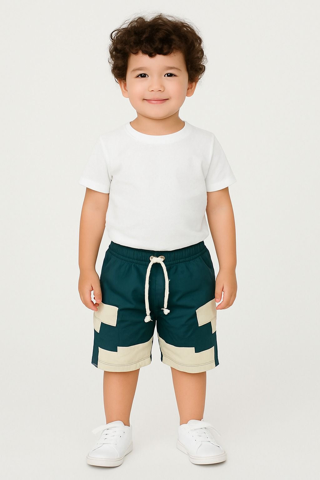 • Bermuda tipo cargo con bolsillos laterales y pretina elástica con cordón ajustable, diseñada para brindar comodidad y libertad de movimiento.