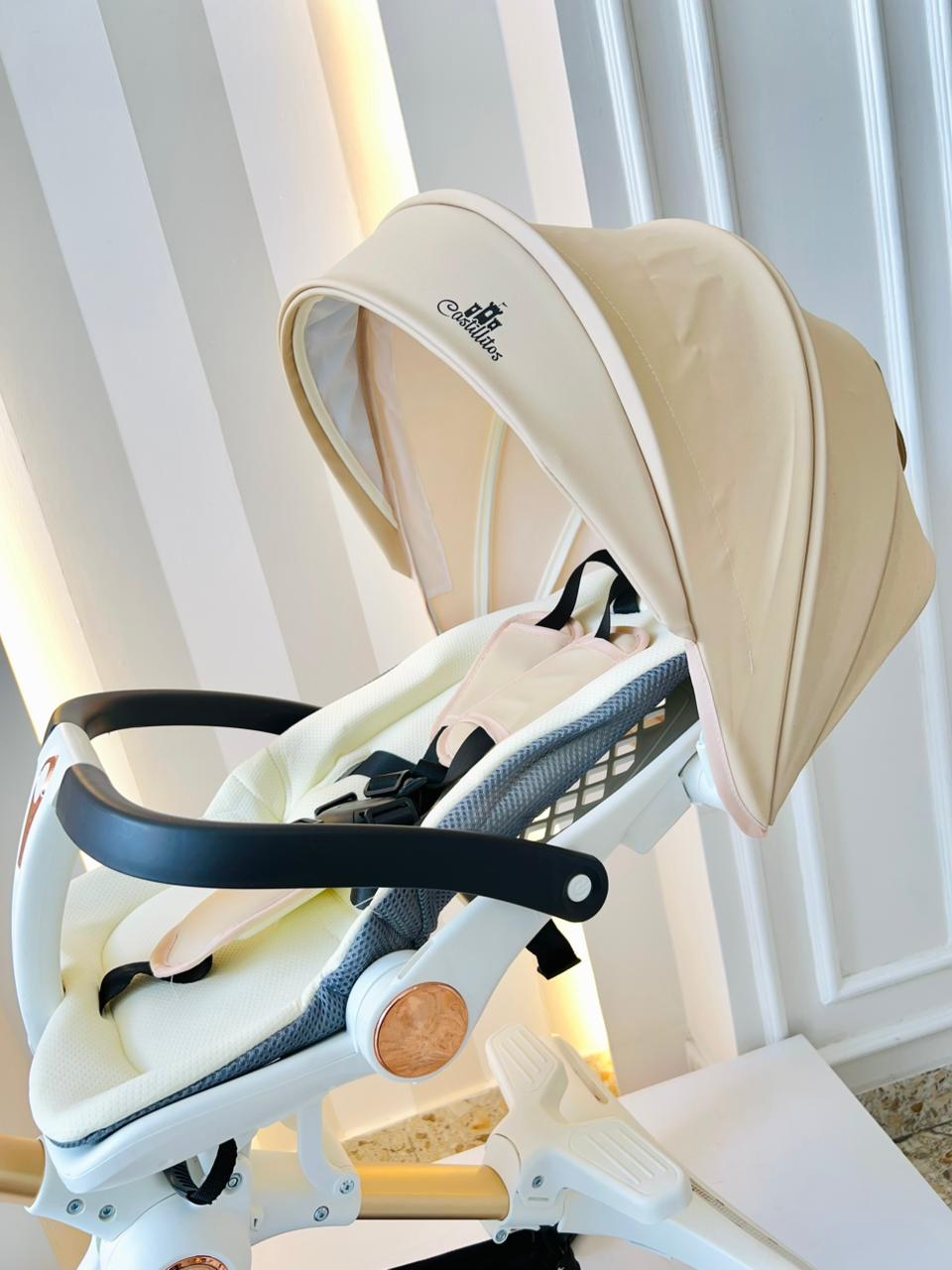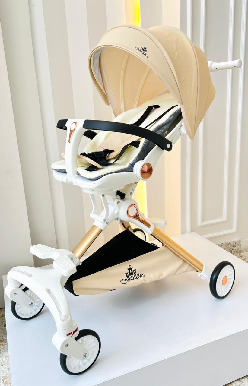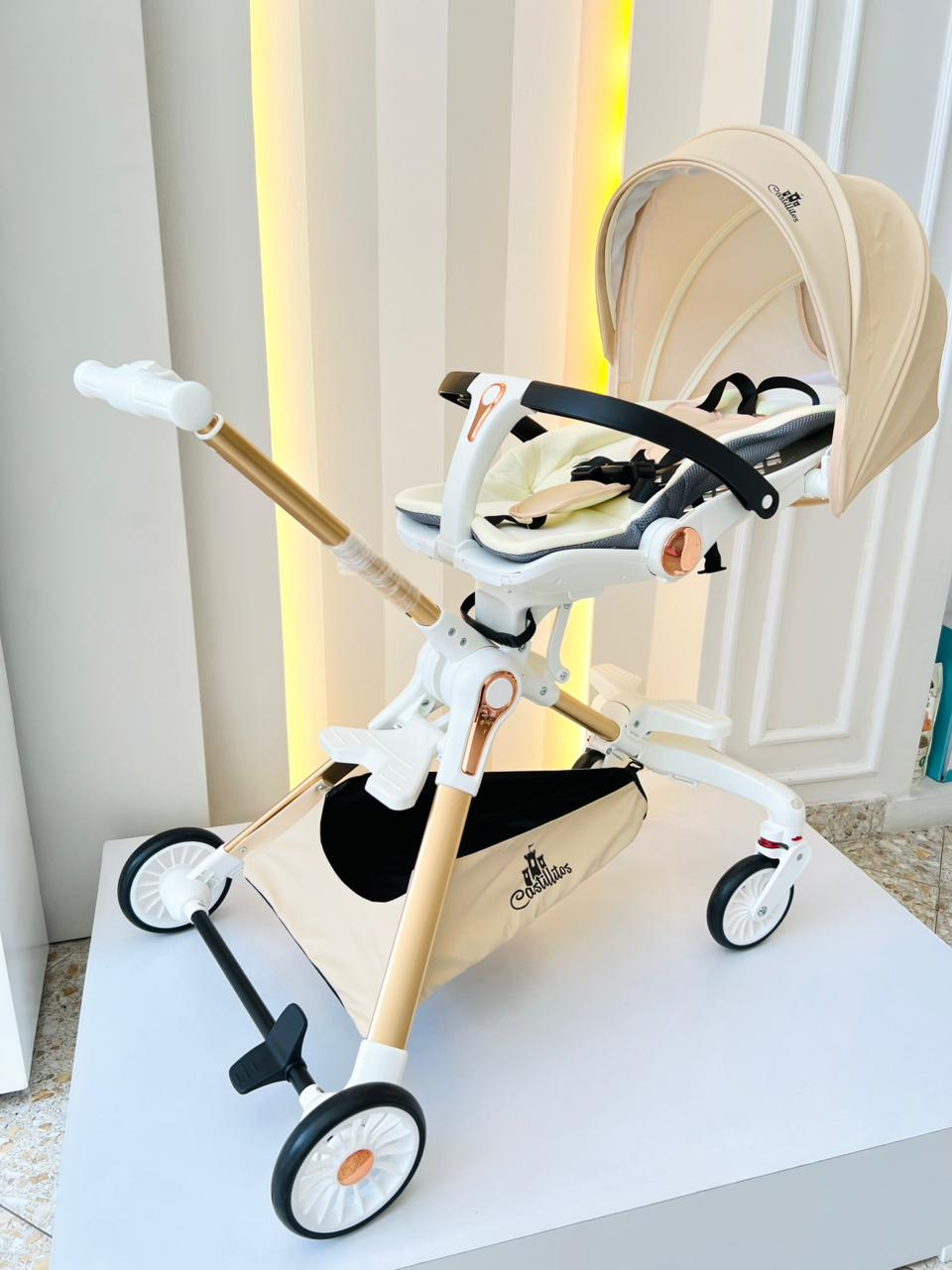 Lleva la comodidad y seguridad de tu bebé a otro nivel con este elegante paseador evolutivo en tono beige con detalles dorados. Su diseño moderno, funcional y plegable lo convierte en el aliado perfecto para las familias que buscan practicidad y estilo.