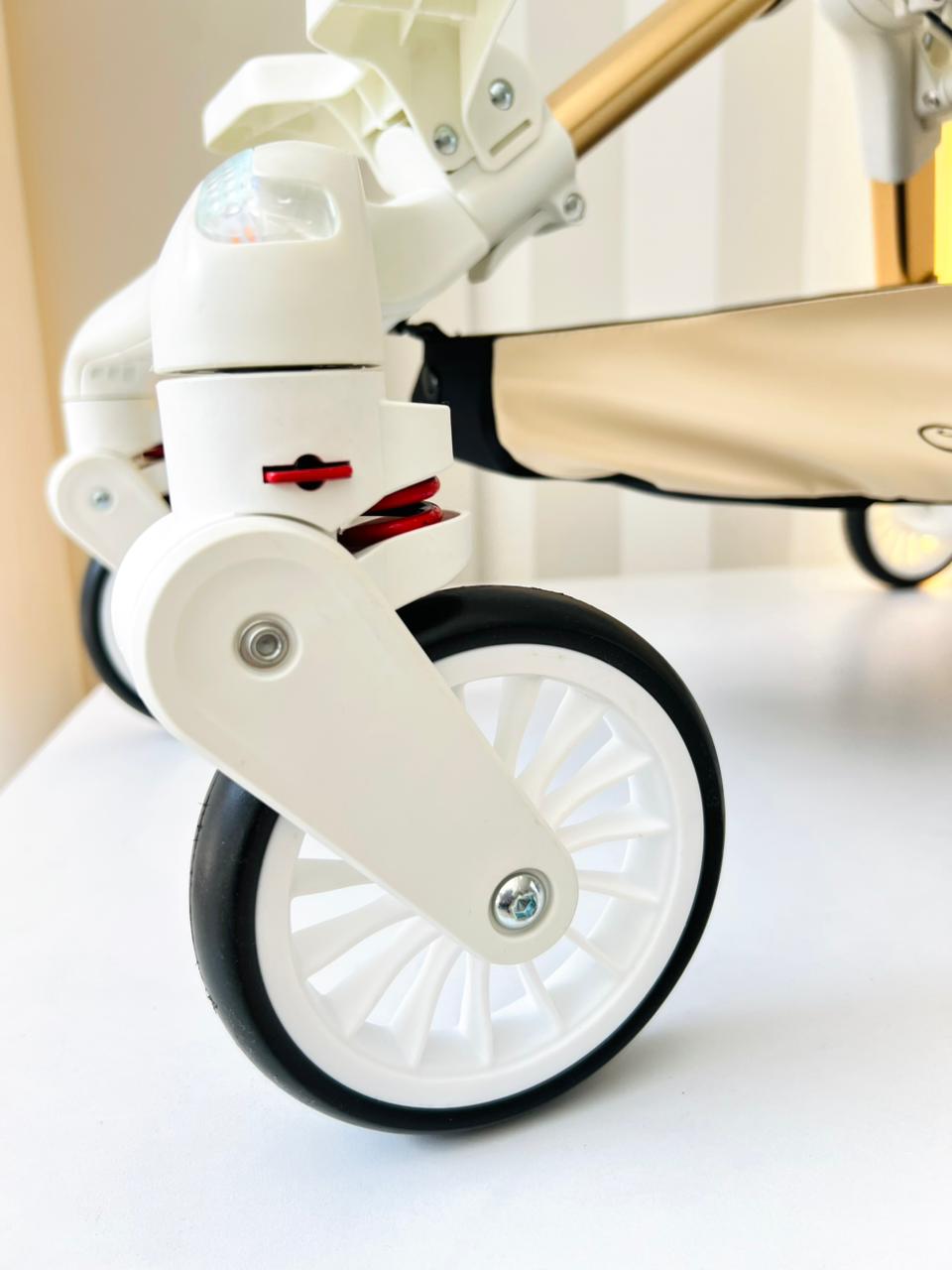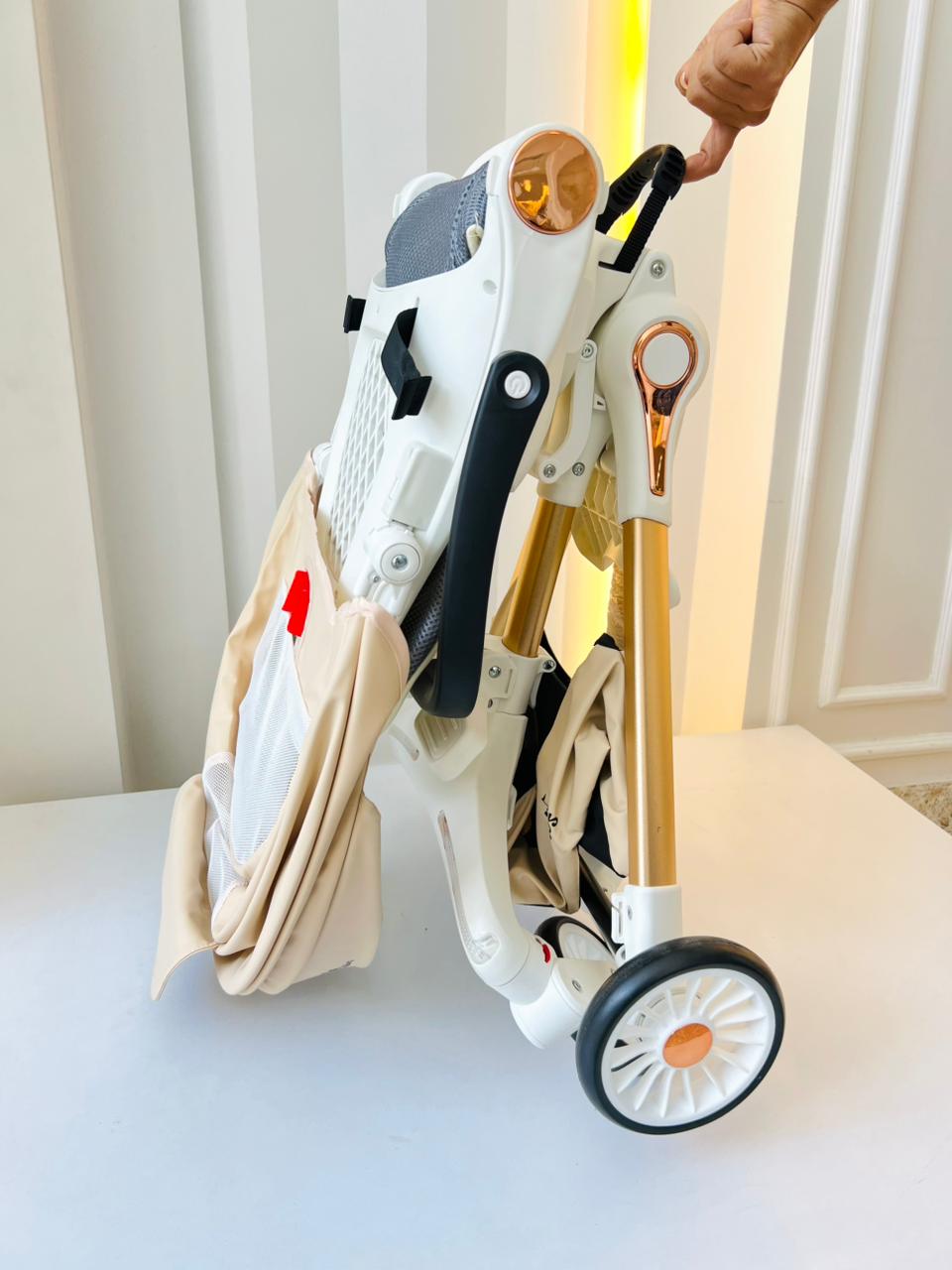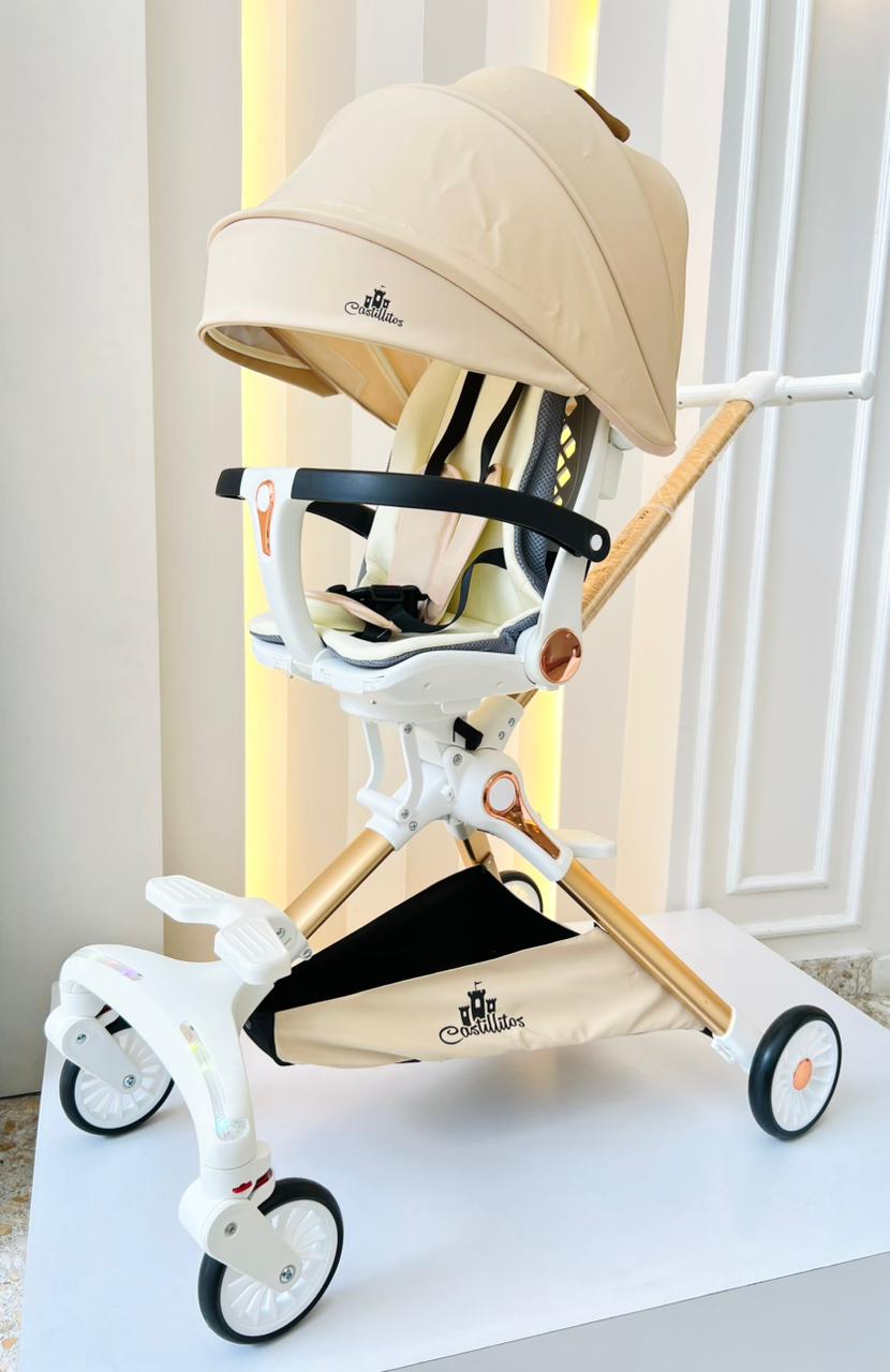 Lleva la comodidad y seguridad de tu bebé a otro nivel con este elegante paseador evolutivo en tono beige con detalles dorados. Su diseño moderno, funcional y plegable lo convierte en el aliado perfecto para las familias que buscan practicidad y estilo.
