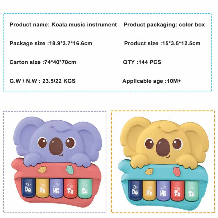 Este tierno piano musical con diseño de koala es un juguete ideal para estimular el desarrollo temprano de los bebés desde los 10 meses. Su estructura compacta y colores suaves lo convierten en una opción atractiva y segura para las primeras experiencias musicales.