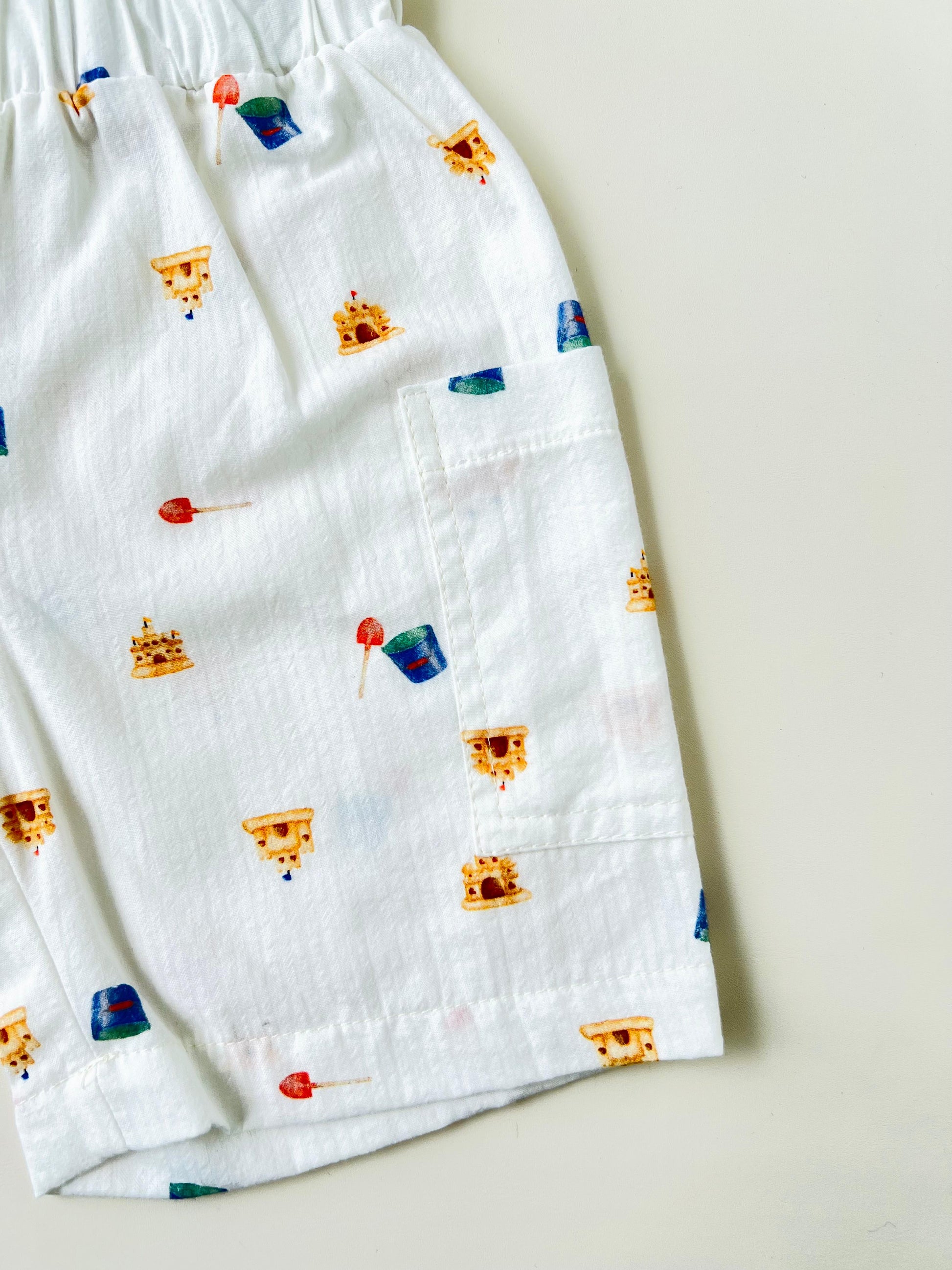 - Shorts a juego con la misma estampa colorida que la camisa, pretina elástica para un ajuste cómodo y bolsillos prácticos.