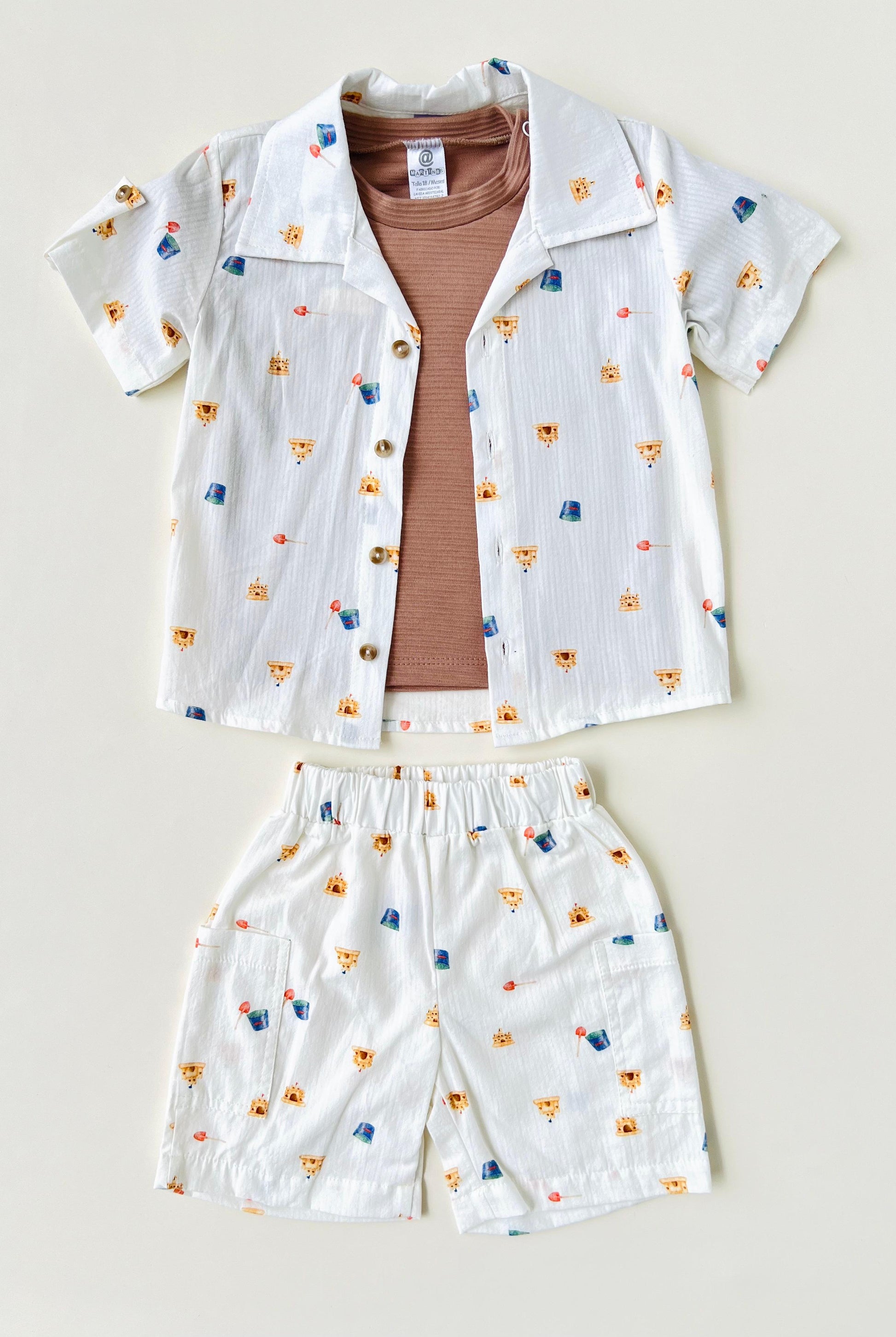 Conjunto de tres piezas para niño, pensado para brindar frescura, comodidad y estilo en días cálidos.